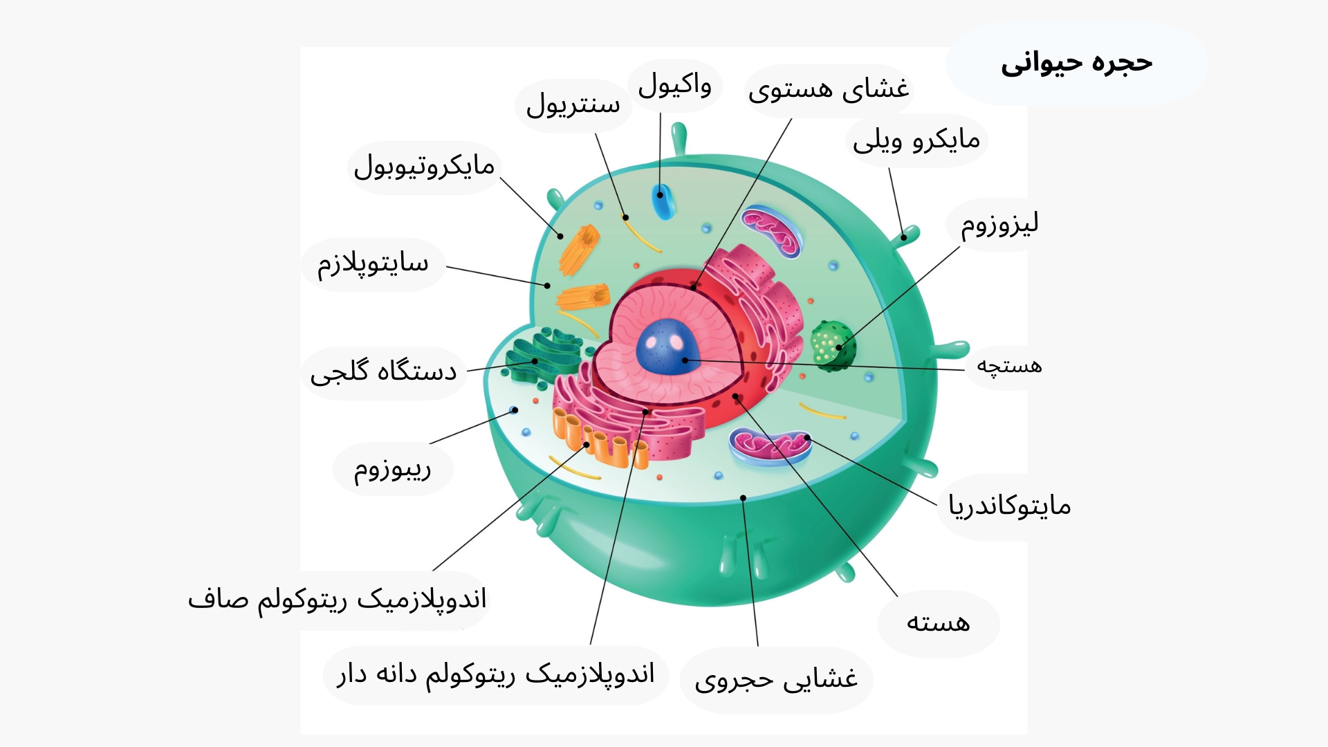 در شکل داده شده نمونه ای از حجره حیوانی با تمامی اجزای داخلی آن تشریح گردیده است.