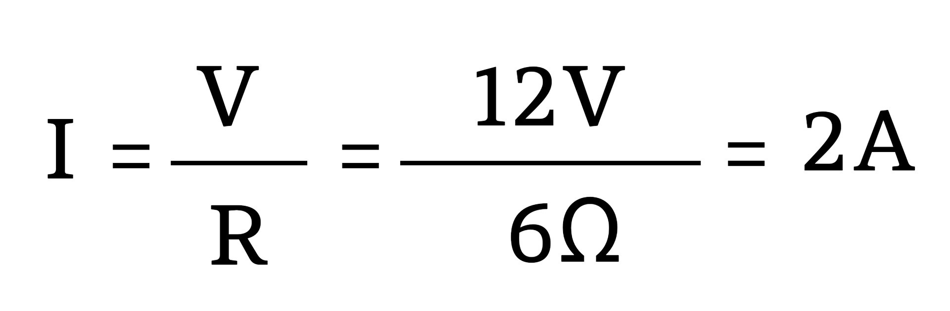 مثال1: برای یک دوره برقی با ولتاژ 12V و مقاومت 6Ω شدت جریان را محاسبه کنید.