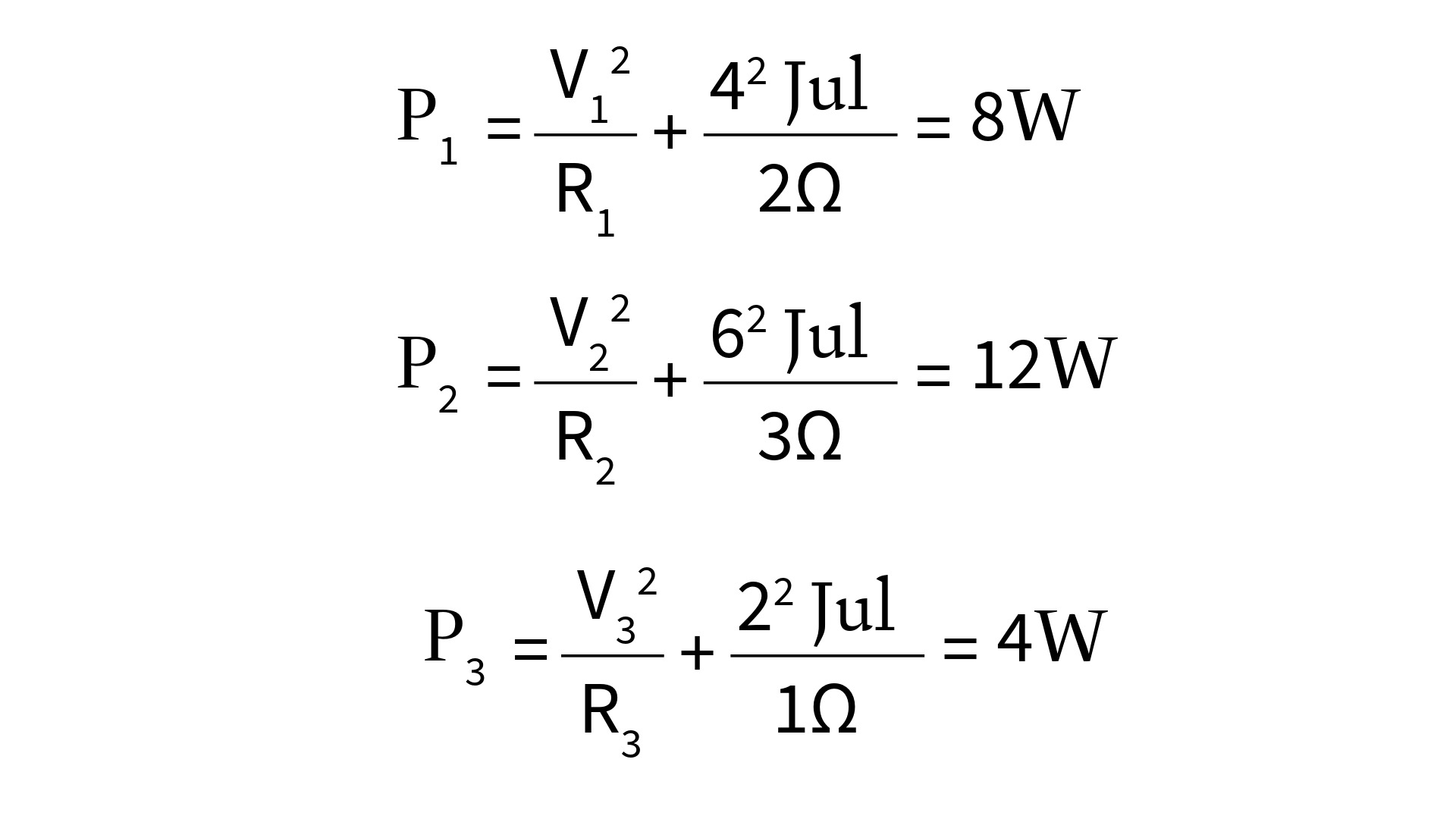 با در نظرداشت مقاومت و ولتاژ برای هر قطعه، توان هر قطعه (مقاومت) را قرار ذیل می توان محاسبه کرد: