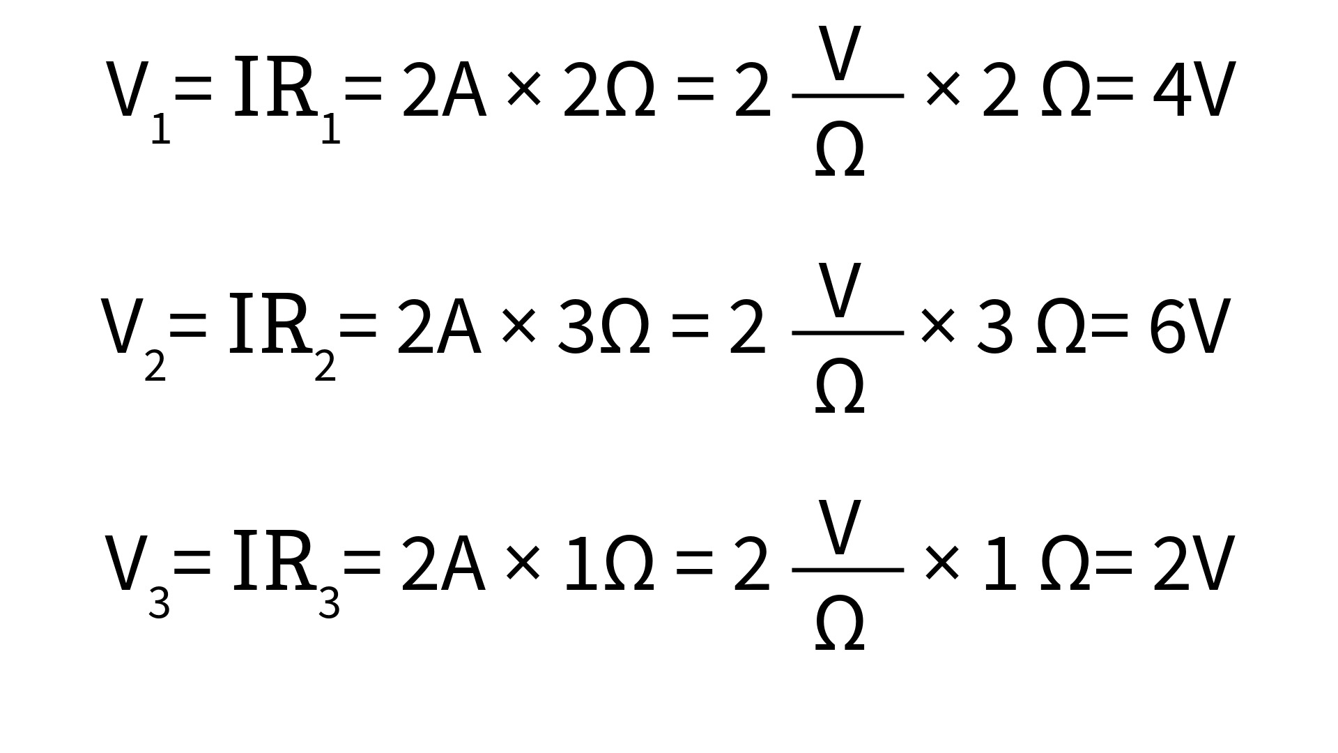 برخلاف جریان که ثابت است، ولتاژ کل منبع بین قطعات تقسیم میشود: