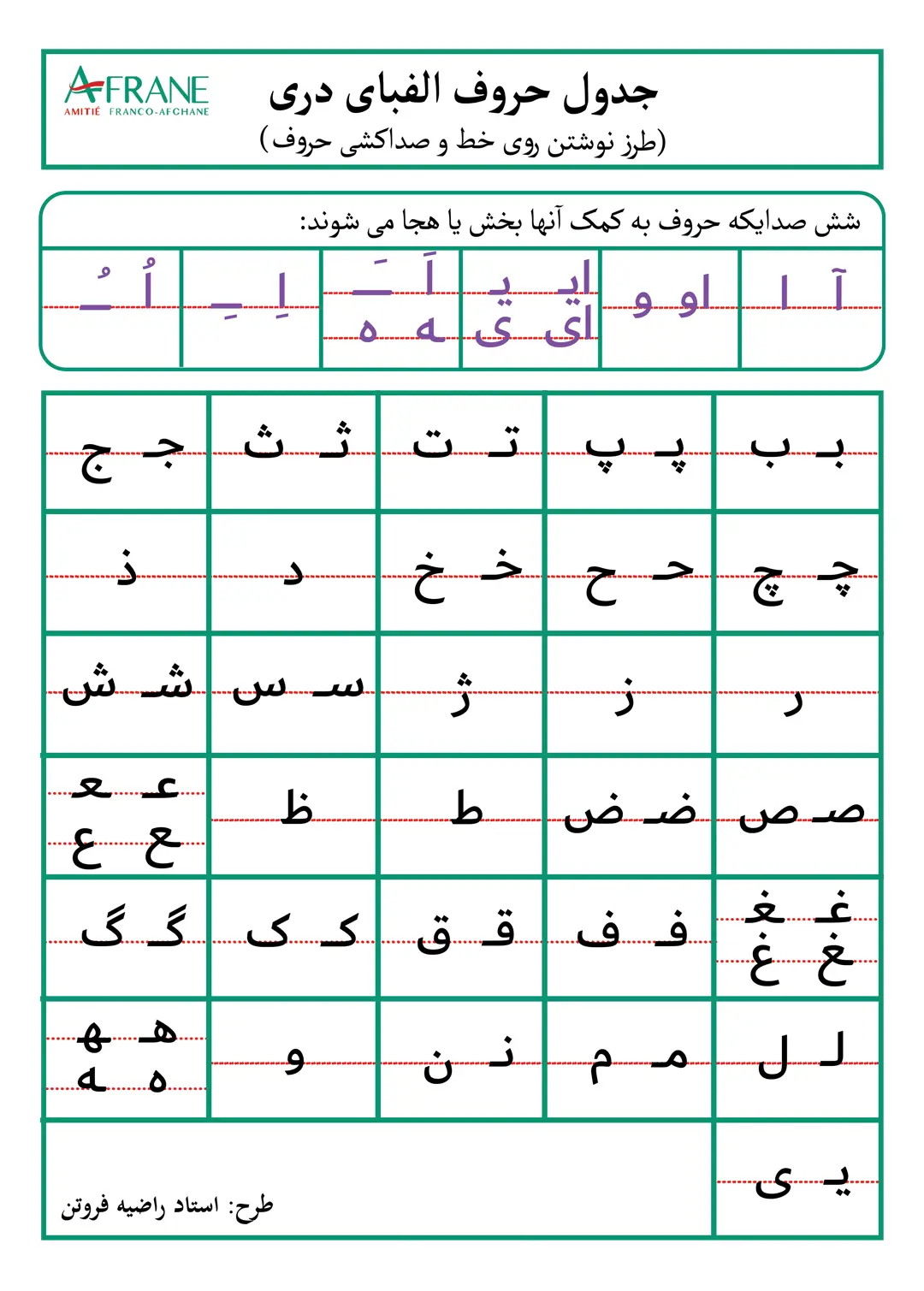 ۲. چارت الفبای دری با اندازه (A4)، برای دانلود روی تصویر کلیک نمایید!