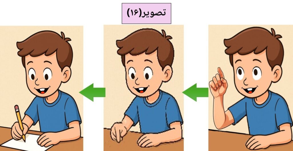فعالیت آموزشی۳: اکنون که شاگردان دیدند که هر عدد چگونه و با چند حرکت نوشته میشود، معلم رویتخته یکی یکی اعداد را مینویسد و از شاگردان میخواهد که به تعقیب معلم هر عدد را روی هوا با انگشتان شان بنویسند، بعداً با کاپی کردن اعداد از روی تخته که معلم قبلاً آنها را نوشته، روی میز یا زمین با انگشتان شان و آهسته آهسته با پنسل یا قلم در کتابچههای شان بنویسند. مانند: (تصویر۱۶)