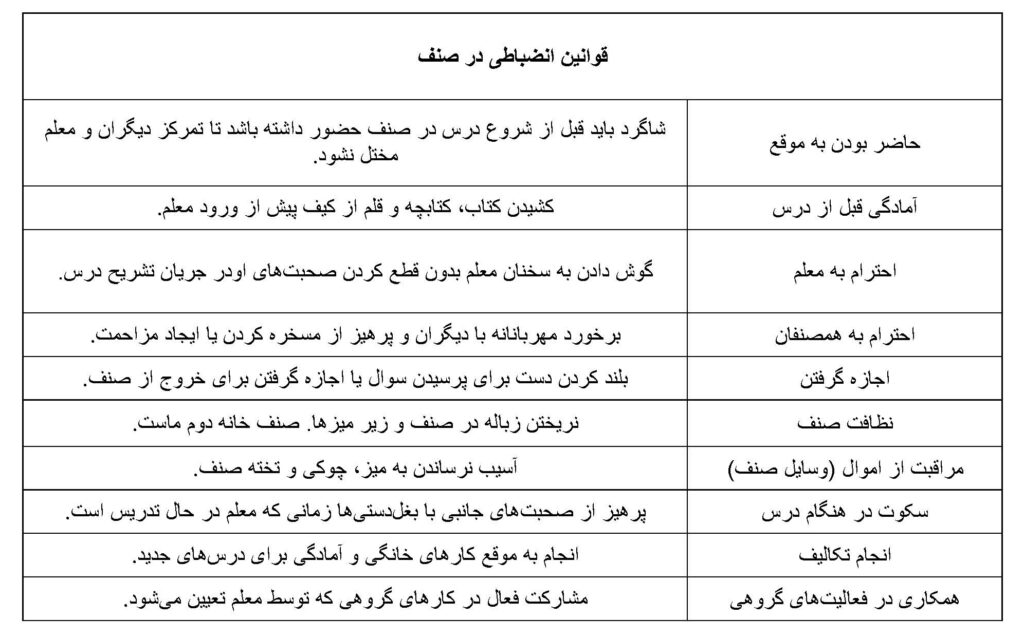 در ادامه، مهمترین اصول و قوانین صنف که نیاز اس برای شاگردان جدید با روش مناسب معرفی شوند، توضیح داده شده است.