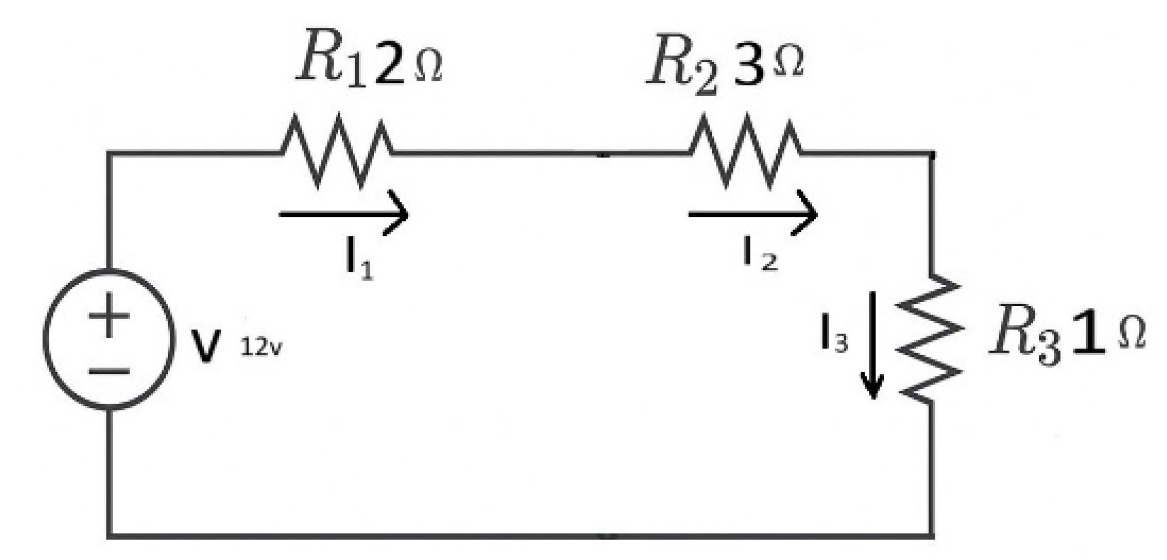 بېلګه1 : د یوې برېښنایي دورې لپاره چې ولټېج یې 12 او مقاومت یې 6Ω وي، د جریان شدت محاسبه کړئ.