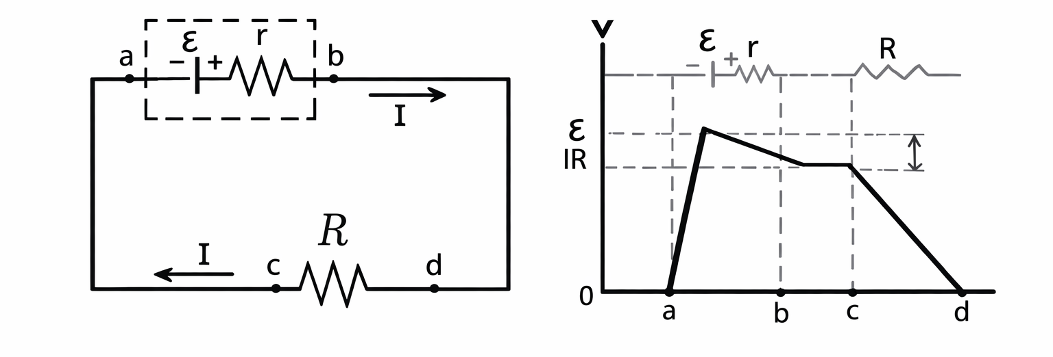 په دې اړېکه کې (ε) د دورې برېښنايي محرکه قوه، R د دورې خارجي مقاومت او r د سرچینې داخلي مقاومت دی. په هغه برېښنايي دوره کې چې جریان پکې وي، د بټرۍ د دوو سرونو د پوتانشیل توپیر له هغې د emf سره مساوي نه وي؛ ځکه چې محرکه قوه د سرچینې د داخلي مقاومت له امله یو مقدار انرژي له لاسه ورکوي. دا داخلي مقاومت په (r) ښودل کېږي.