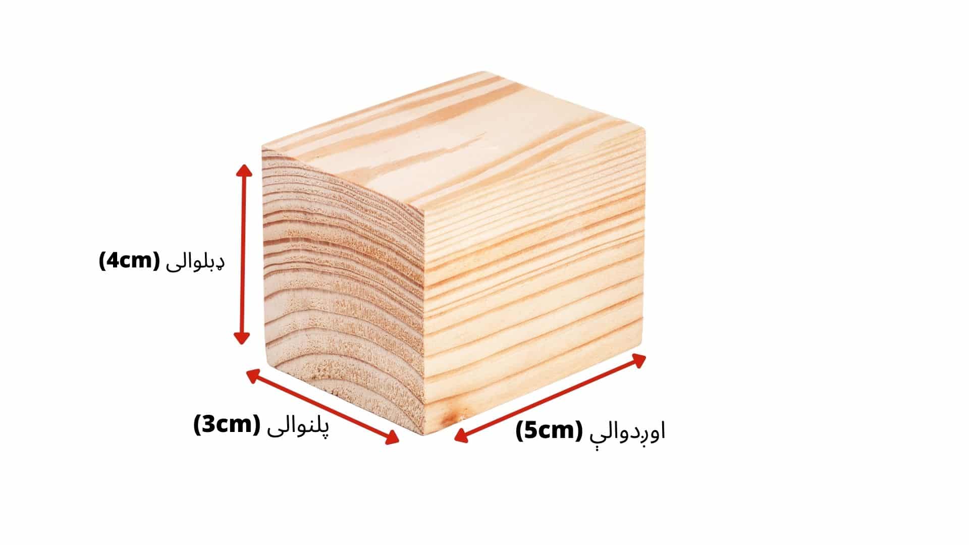 حل: دکثافت د پیدا کولو لپاره لومړۍ دې ته اړتیا ده چې ورکړل شوي بعدونه په پام کې لرلو سره د لرګي حجم محاسبه کړو ، او د حجم د پیدا کولو لپاره د لرګي اوږدوالې، عرض، او ضخامت یو د بل سره ضرب کړو.