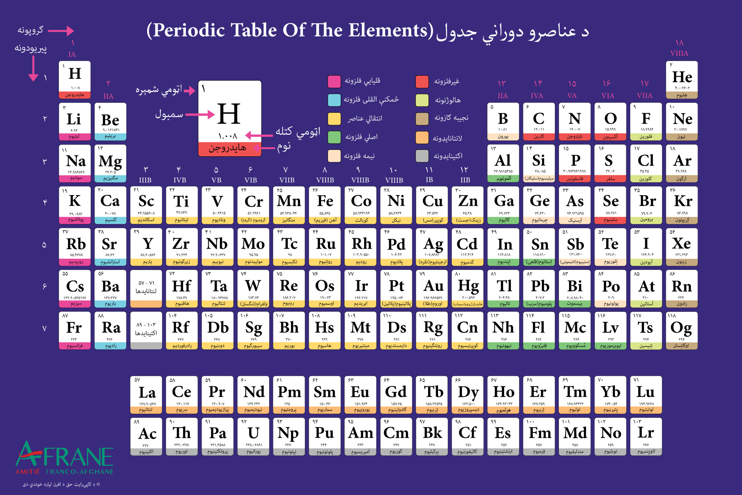 تاسې کولی شئ د چاپ لپاره د بېلابېلو اندازو سره د عناصرو تناوبي جدول د لاندې انځورونو په کلیک کولو ترلاسه کړئ.