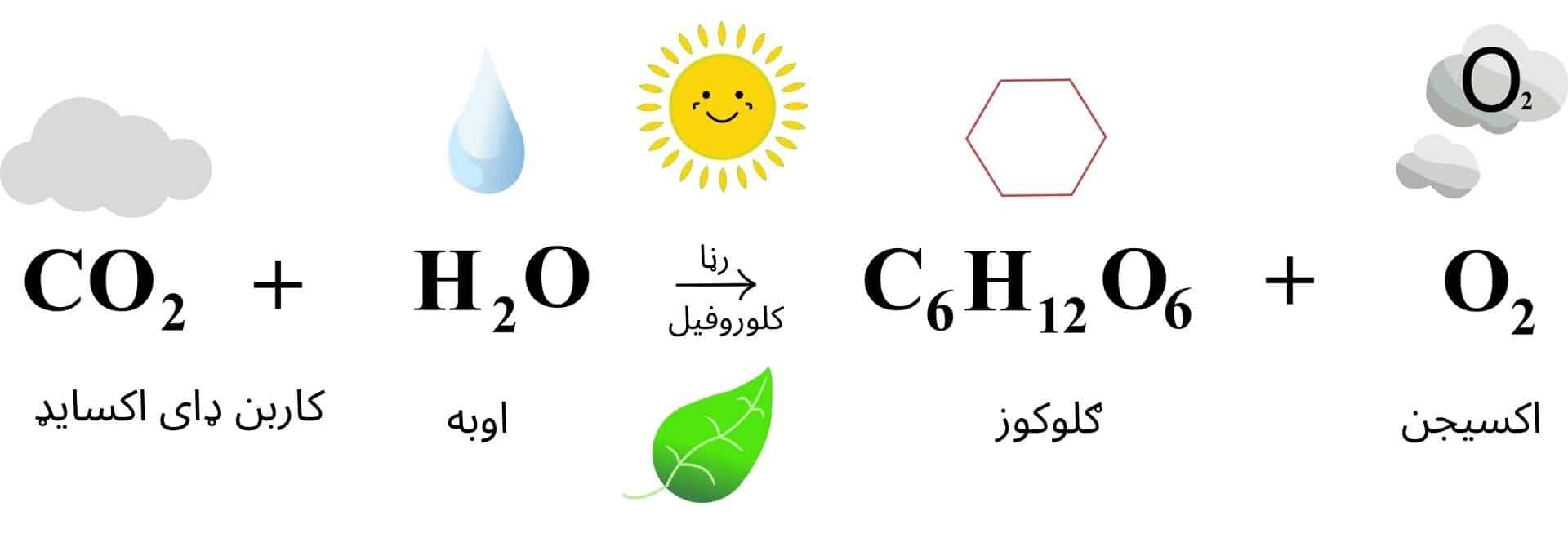 د فوتوسنتیز کیمیاوي معادله په لاندې ډول ده: