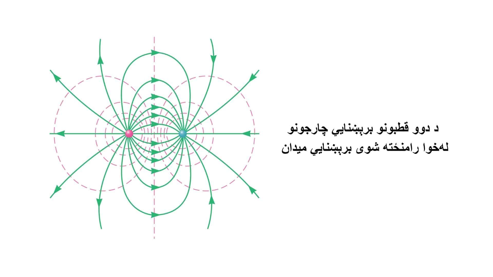 په لاندې شکل کې د برقي ساحې لوری ښودل شوی دی.
